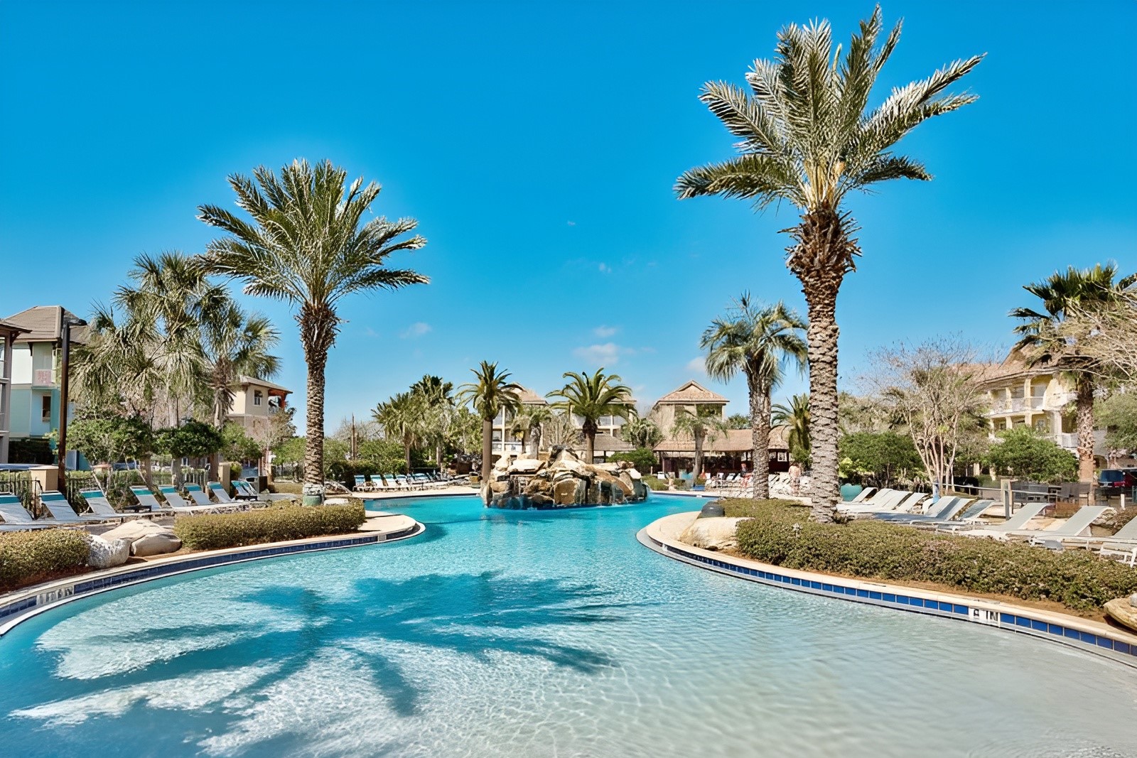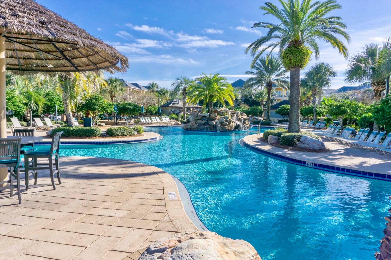 Within the serene confines of The Beach Nut, comfort meets elegance, accommodating up to 12 guests across four beautifully designed bedrooms. It features three plush king beds and a custom-crafted bunk room with a mix of twin and full-sized beds, ensuring a peaceful slumber for all. Step outside to discover a community oasis—the expansive walk-in lagoon pool, complete with enchanting waterfalls that meld into the lush landscape, a bubbling hot tub, and a convivial Tiki area. These amenities create a sensory delight alongside the tune of surround sound music. When the beach beckons, a complimentary trolley service during peak season makes the journey as effortless as the gulf tide.