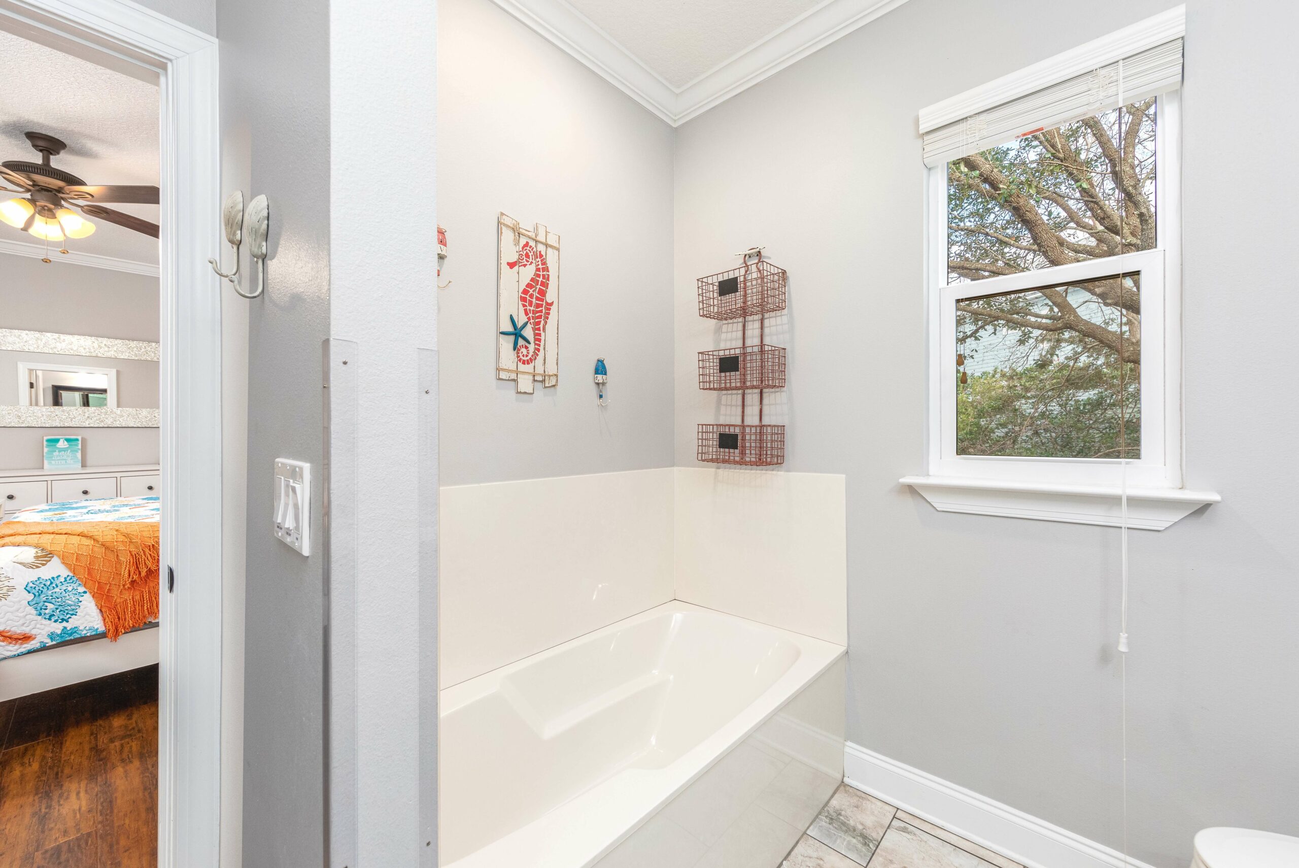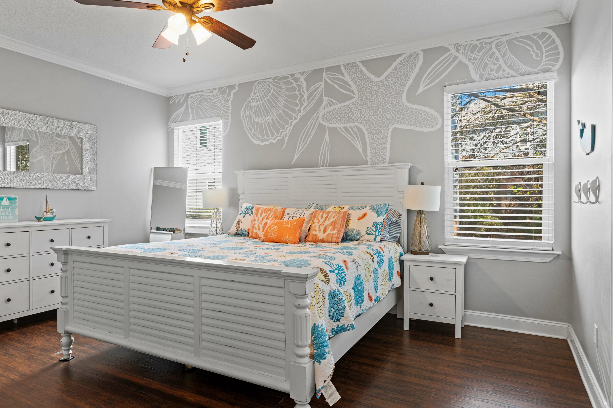 The Beach Nut envelops you in its stylish and spacious embrace, where four luxurious bedrooms comfortably accommodate up to twelve guests. A harmonious blend of coastal charm and modern sophistication, this home boasts an open-concept living area, a gourmet kitchen for shared feasts, and inviting spaces for both entertainment and repose. Here, every detail caters to a seamless blend of relaxation and elegance, creating an idyllic refuge mere moments from the tranquil Gulf waters.