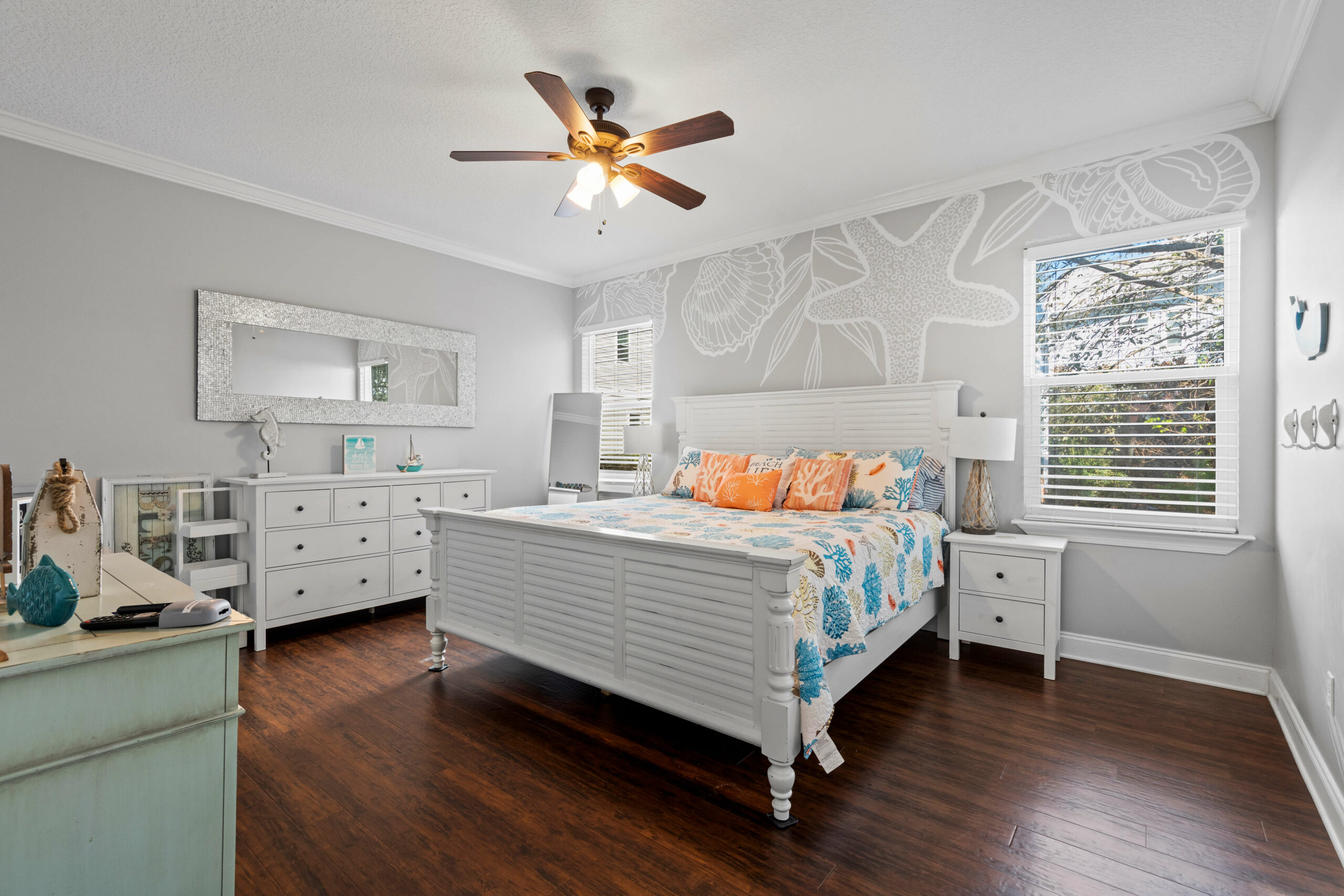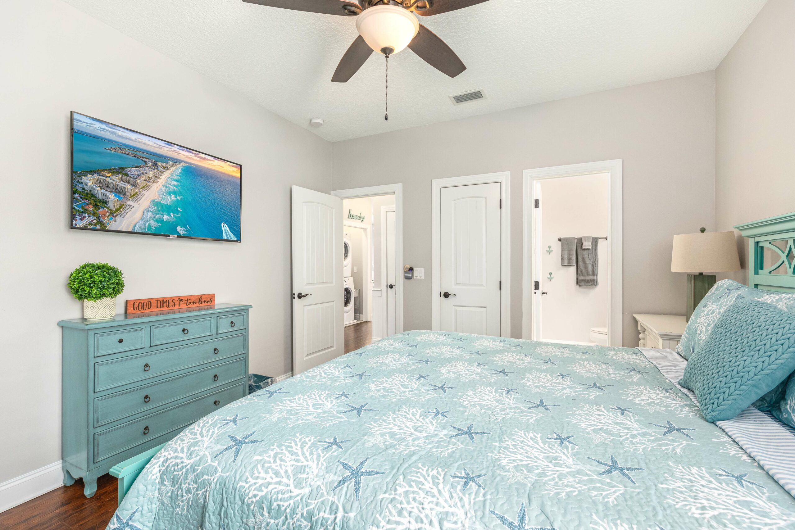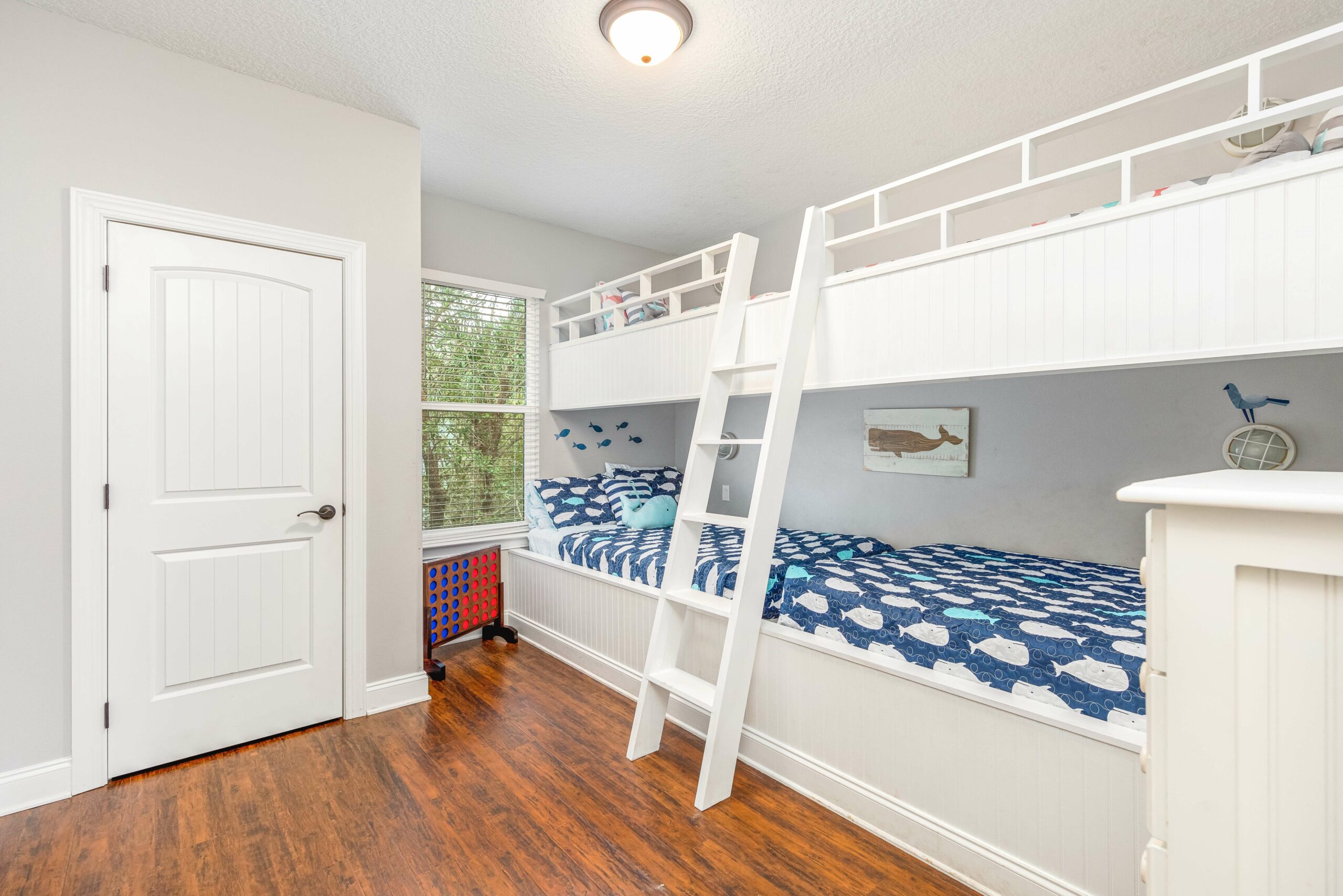 Versatile Bunk Room: The creatively designed fourth bedroom is a hit for kids and guests, offering custom bunks with twin-over-full configurations that comfortably sleep up to six, making it an ideal space for sleepovers and storytelling.